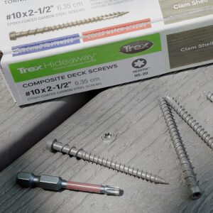 These Screws by Trex are the ideal solution for securely fastening Trex composite deck boards while maintaining a flawless appearance. Engineered to match the exact color of Trex decking, these screws provide a seamless finish, blending perfectly into the surface for a polished, professional look.