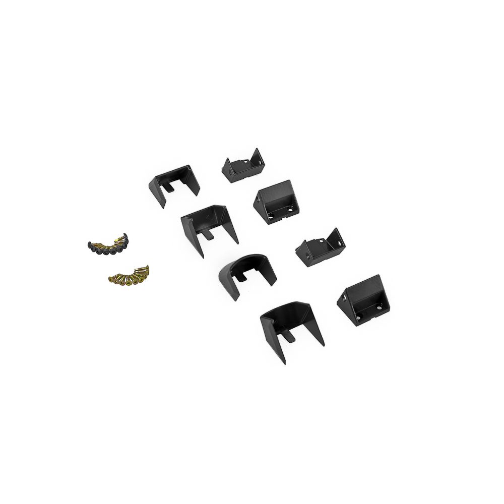 These fixed angle mounts are used to secure a rake or stair section to a post. Additionally, each package includes four brackets, two top rail connectors, and two bottom rail connectors and screws.